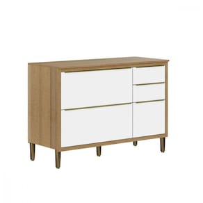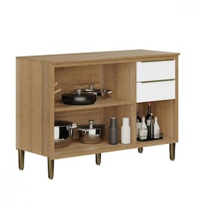 Balcão Com Tampo 3 Portas 2 Gavetas Paola - Aramóveis Carvalho Dakar / Branco Balcao 3 Portas 2 Gavetas Com tampo Paola Aramoveis Balcao com 3 portas e 2 gavetas. Fabricado em MDP com 15 mm de espessura, garantindo maior resistencia e durabilidade. Possui amplo espaco interno, proporcionando estabilidade ao movel. Puxadores de plastico, conferindo maior durabilidade. Pes em PVC, altamente resistentes, e dobradicas metalicas, que aumentam a durabilidade no uso diario. Acabamento em verniz de alto brilho e fosco, conservando o movel e mantendo seu brilho. Acompanha tampo em MDP 15mm em acabamento.