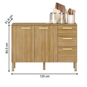 Balcão com 3 Portas, 2 Gavetas e Tampo Incluso Prático e funcional, ideal para complementar sua cozinha.