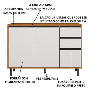 Balcão Com Tampo 3P 2G 120 cm projetado para quem busca aliar sofisticação e praticidade na sua cozinha. Estrutura em MDP 15mm, tampo em MDP de 15mm. Acabamento em pintura UV, possui 3 portas de bater com dobradiças metálicas e reforçadas de 26mm, possui 02 gavetas com corrediças telescópicas que possibilita a abertura total, puxadores em polímero preto, prateleira interna, pés reguláveis de 17 cm em PVC. Permite acomodar uma pia de até 120 cm x 50 cm e para usar o balcão para pia a fixação dos afastadores é de montagem obrigatória. O acabamento acetinado nas portas proporciona um toque de sofisticação. Este móvel chegará em sua casa separado em 01 volume.