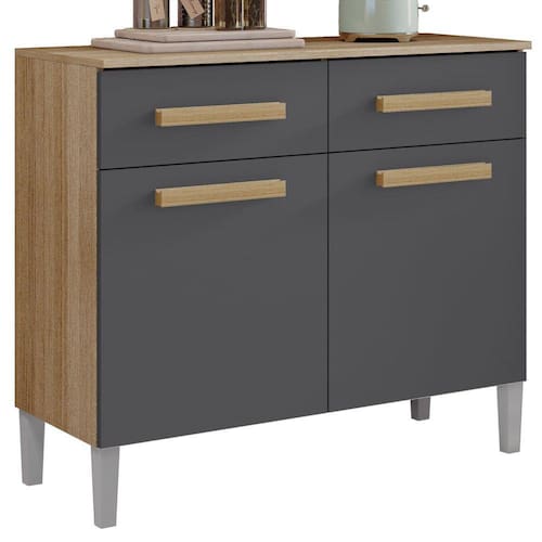 Balcão Para Cozinha Com Tampo Juma/Lilian, é a escolha certa para você que quer uma cozinha moderna, compacta e organizada. Estrutura em MDP de 12 e 15mm, pintura com acabamento em Verniz, este acabamento garante manter a beleza constante do móvel, resistência e durabilidade, prolongando a vida útil do produto. Composto por 02 portas com dobradiças metálicas, 02 gavetas com corrediças metálicas com ótima fixação e deslize livre de enrosco, puxadores em MDF, amplo espaço interno proporcionando mais conforto e comodidade na hora de organizar sua cozinha. Este móvel chegará em sua casa separado em 01 volume.