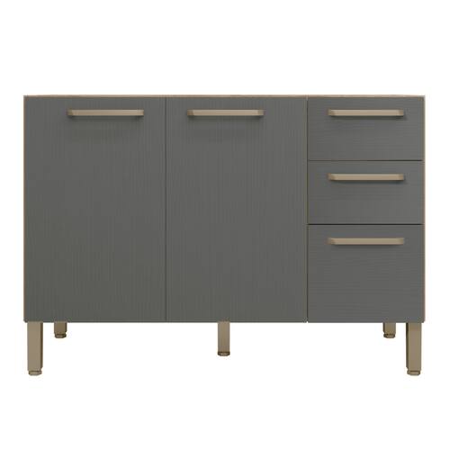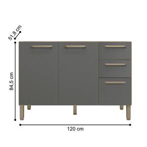 O Balcão é um exemplo de elegância e sofisticação na decoração de cozinhas. Com matéria prima que respeita o meio ambiente. Possui 3 portas com dobradiças 100 % metálicas que garantem mais segurança e qualidade ao produto, dispõe também 2 gavetas com corrediças telescopicas que suavizam a abertura e fechamento das gavetas. Permite a utlização de tampo inox.