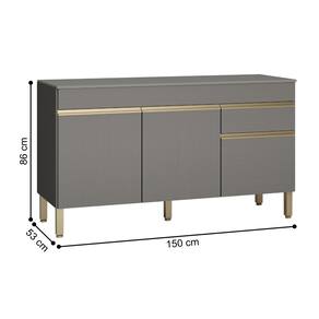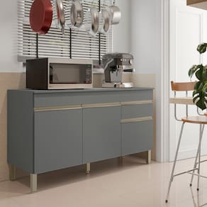 O Balcão possui 3 portas e 1 gaveta e 1 tampo incluso, destaca-se por sua praticidade e eficiência de uso, podendo ser utilizada como complemento de cozinha.
