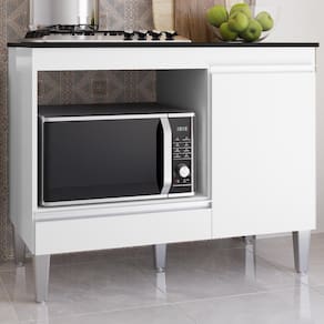 MDPBalcão Para Cooktop e Forno Carla, funcional e compacto para o seu dia a dia. Estrutura em MDP (12/15 mm - fundo 3 mm) com acabamento em pintura UV. Composto por porta e gaveta com dobradiças e corrediças metálicas, puxadores em alumínio, tampo com espaço para fogão cooktop de 4 ou 5 bocas (tampo marcado para recorte e deverá ser recortado caso queira usar cooktop) e espaço interno para botijão de gás e/ou utensílios. Pés em plástico com regulagem. FOGÃO/ELETROS NÃO INCLUSOS. Produto será entregue em 01 volume.