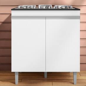 -Acompanha tampo de madeira MDP sem corte com marcação para fogão de 4 ou 5 bocas.