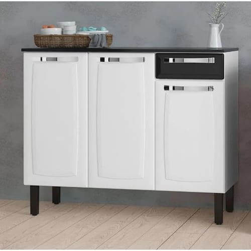 Fabricado em aço de alta qualidade; Pintura Eletrostática a pó de alto brilho e resistência.; Corrediças telescópicas; Dobradiças metálicas 26mm; Pés de plástico;