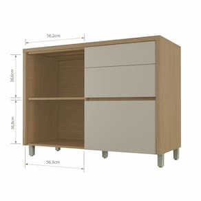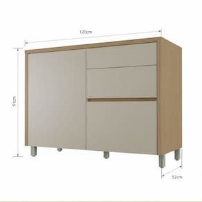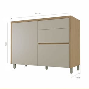 Balcao Condessa 1 Porta 3 Gavetas 120cm em MDF Cozinhas Nesher - Bege