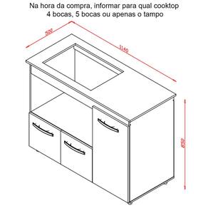 • Informações Adicionais: *Na hora da compra informar para qual cooktop - 4 bocas, 5 bocas ou apenas o tampo*