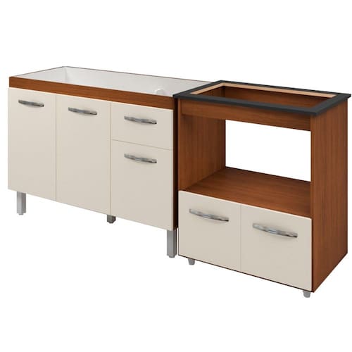 Balcão para Pia Anitta e Cooktop 4 Bocas Elisa, é ideal para quem busca qualidade e sofisticação para compor sua cozinha da forma que desejar. Estrutura em MDP de 12 e 15 mm, acabamento em pintura UV. Kit com 01 balcão para pia de 120cm de 3 portas e 2 gavetas e 01 balcão para Cooktop (56x36 cm tampo já recortado), com 02 portas articuladas, dobradiças metálicas e 01 nicho para microondas ou forno elétrico, puxadores em plástico cromado, espaço para utensílios, acompanham pés fixos que garantem a firmeza que o móvel precisa. Produzido com controle de qualidade e com excelente acabamento. Este móvel chegará em sua casa separado em 02 volumes.