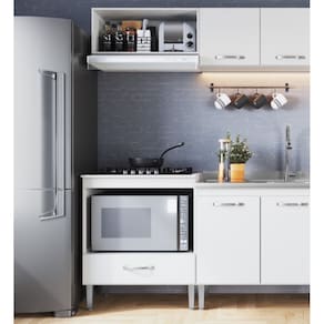 O Balcão Cooktop Light é prático, versátil, resistente e compacto! Produzido em MDP com pintura UV, conta com espaço para cooktop, espaço para forno ou microondas e ainda possui uma porta basculante que facilita o armazenamento das suas coisas!