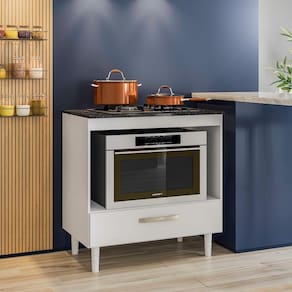 Balcao Cooktop E Forno Com 1 Gaveta Branco Nicioli Branco O Balcao Cooktop 0,80m da Nicioli, combina estilo com funcionalidade! Ele possui tampo para Cooktop padrao de 04 bocas com extensao para Cooktop de 5 Bocas. Possui 1 Gaveta com espaco interno para voce organizar seus utensilios. Tem tambem espaco para forno micro-ondas que ira deixar tudo a mao no momento mais gostoso do dia! Dimensoes: Altura (com pes): 84 cm | Largura: 80 cm | Profundidade: 53 cm