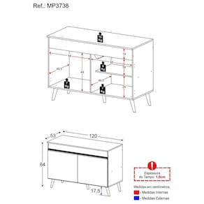 Altura: 84cm | Largura: 120cm | Profundidade: 53cm (balcão com tampo)
