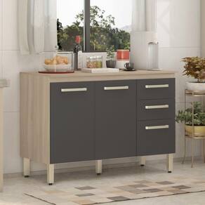 Balcão Cozinha 3 Portas 2 Gavetas Demóbile Avena Grafito - Marrom