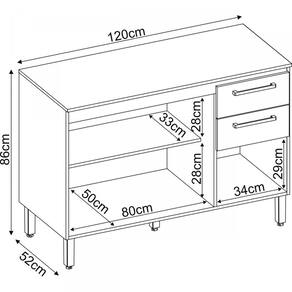 Medida do Tampo (L x C x E): 120x52x1,5