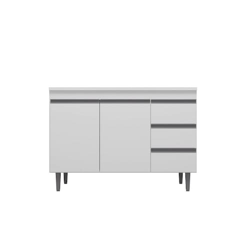 Balcão Cozinha Andréia Pia 100 cm Com Pés 2 Portas 3 Gavetas Bco - AJL Móveis