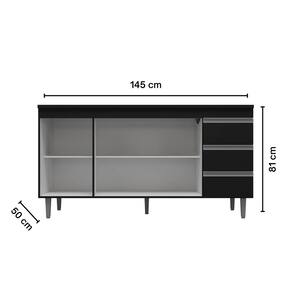 Balcão Cozinha Andréia Pia 150 cm Com Pés 3 Portas 3 Gavetas Pto - AJL Móveis
