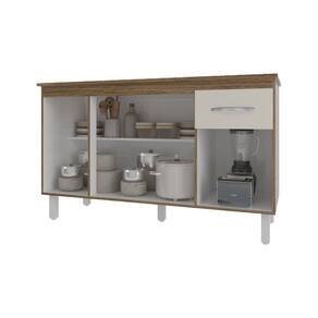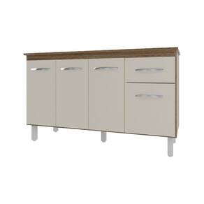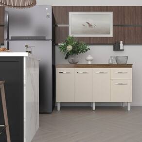 Balcão Cozinha Armário Gabinete Camila Savana Off White Com Tampo Tampão 140 cm Mobília Decor Savana - Marrom