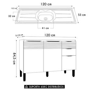 Balcão: 120 cm x 84,5 cm x 51,8 cm.