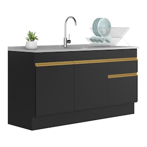 O Balcão Cozinha com Rodapé Gabinete Pia 150 cm 3 Portas 1 Gaveta Veneza Multimóveis tem um excelente custo benefício e um amplo espaço interno. Produzido em MDP com acabamento acetinado (cerca de 20% de brilho), que garante maior durabilidade e resistência, possui corrediças metálicas (mais leveza no manuseio), rodapés, que deixam o ambiente mais estiloso, puxadores em ABS e tampo em MDP 15mm com pintura de alta resistência. O balcão possui tampo removível (compatível com pia de 150 cm) e a gaveta pode ser montada de ambos os lados (direito ou esquerdo). *Não acompanha pia de inox.