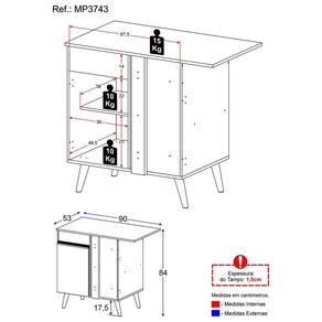Altura: 84cm | Largura: 90cm | Profundidade: 53cm (balcão com tampo)
