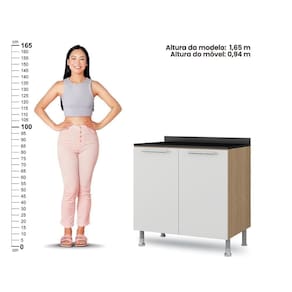 Transforme a sua cozinha em um espaço deslumbrante e bem organizado com o incrível Balcão Ditália Aspen carvalho Branco com tampo preto.