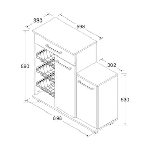 Cestos/Fruteiras em aramado. Puxadores cromados produzidos em polímeros, posui também rodizíos.