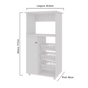 ESPECIFICAÇÕES - Estrutura em MDP 15 mm - Puxador pontual - Cestos plásticos para frutas e legumes - Dobradiças metálicas - Tampos e base reforçados
