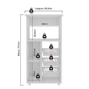 PESO SUPORTADO - Tampo até 10 kg - Prateleiras até 5 kg cada - Cestos até 5 kg cada