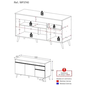 Dimensões do produto montado: Altura: 84cm | Largura: 150cm | Profundidade: 53cm (balcão com tampo).