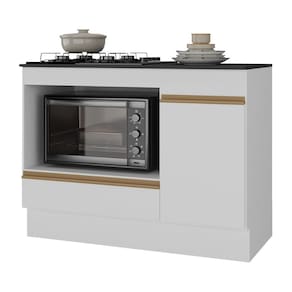 Balcão Cozinha para Cooktop e Forno 105cm 1 Porta 1 Gaveta com Rodapé Veneza Multimóveis MP2295 - Branco