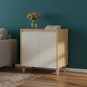 Duas portas articuladas com dobradiças amortecedoras (caneca 35 mm) para fechamento suave e durabilidade.