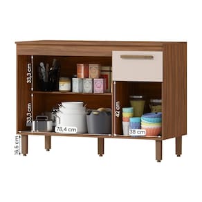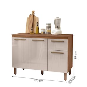 Balcão Cozinha Pop 120 cm com Tampo 3 Portas e 1 Gaveta - Bege