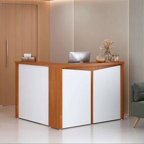 que tal o balcão de atendimento lane? para criar uma boa sala de espera onde receber seus clientes, pode começar com o balcão lane. feito em formato de l, ele tem espaço para comdor e outros objetos necessários ao dia a dia, como pastas, canetas e papéis. ah, além do tampo alto no qual o cliente pode apoiar seus pertences, ele tem tampo mais baixo para o cionista trabalhar com conforto. perfeito para espaços sóbrios e profissionais, o móvel destaca a cor branca e o amadeirado, assim é simples de combinar com o resto da decoração. Marca: Modern