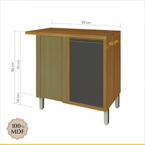 Características: Balcão com montagem para ambos os lados Produto 100 MDF de 15, 18 e 30 mm Puxadores de Alumínio na cor bronze Tampo em MDF de 30 mm 04 Pés em PVC reguláveis com acabamento pintado Acabamento de Pintura - Impressão de alta qualidade fosco 1 prateleira Suporte de peso 30kg total -15kg por prateleira- Garantia 90 dias