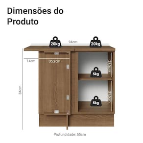 COR: Branco | Garantia: 3 meses contra de fabricação | Dimensões - Altura: 84 cm | Dimensões - Largura: 94 cm | Dimensões - Profundidade: 55 cm | Produto: Cozinha | Marca: Madesa | Peso do Produto: 31 kg | Material: MDP | RBN: Casa/Móveis/Móveis de Cozinha | Estado de Origem: RS | Material para Filtro: MDP | Conteúdo da embalagem: 1 Balcão de Cozinha | Instruções/Cuidados: Utilize um pano limpo, levemente umedecido e seque em seguida a superfície. Não usar produtos químicos ou abrasivos para a limpeza. Recomendamos polir seu móvel com lustra-móveis duas a três vezes por ano. | Quantidade de gavetas: 0 | Quantidade de portas: 1 | Produto precisa de Montagem?: Sim, sugerimos a contratação do nosso de montagem (para os CEPs em que o está disponível) ou de algum experiente de sua preferência | Inclui tampo: Sim | Altura do Produto com Embalagem (cm): 14,8 | Largura Produto Com Embalagem (cm): 55 | Comprimento Produto Com Embalagem (cm): 100 | Peso Produto Com Embalagem (Kg): 31,09 | Dimensões do item P x L x A (item_depth_width_height): depth#value=55;depth#unit=centimeters;height#value=84;height#unit=centimeters;width#value=94;width#unit=centimeters | Nome do Simples no Fornecedor: Balcão de Canto 1 Porta Rustic/Branco Vik Madesa | Fabricante: Madesa | Tipo de móveis de cozinha: Balcão | Linha: Vik | Materiais do corpo: MDP | Materiais das portas: MDP | Quantidade de caixas de embalagem: 2 | Bullet Point 0: Dimensões: 84 cm altura x 94 cm largura x 55 cm profundidade | Bullet Point 1: Inspiração no estilo americano, frentes com acabamento chanfrado e textura fosca suave ao toque | Bullet Point 2: Puxadores ponto em ouro envelhecido e portas com fechamento suave | Bullet Point 3: A combinação perfeita entre design clássico e elementos modernos | É Frágil: Não | Quantidade de Itens: 1 | Certificação de teste externa: Sim | Modelo: G247506EVK | Precisa de baterias ou pilhas: Não | da peça: G247506EVK | Componetes Incluidos: Portas | Preço sugerido sem impostos: | Peso do Item: ;unit=kilograms | Descrição do Tamanho: | Inclui manual de montagem: Sim Cor: Rustic/Branco