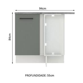 - Um (1) Balcão de 84 cm de altura x 94 cm de largura x 55 cm de profundidade com uma (1) porta, uma (1) prateleira interna e dois (2) tampos.