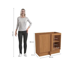 Fechando ótimas combinações com o aéreo do mesmo tamanho, o balcão pode ser montado com cuba, tampo ou pedra, e para um melhor acabamento, ele conta com rodapé, mas acompanha as ferragens para ser montado suspenso, e se você preferir, também pode adquirir os pés separadamente, garantindo muita praticidade. A escolha ideal para composições em "L" e para otimizar espaço, medindo 88cm de altura, 98cm de largura e 52cm de profundidade, o balcão possui uma porta e duas prateleiras, além de amplo espaço para organizar louças e mantimentos.