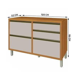 Material Principal: MDF | Cor: Freijó e Off White | Marca: Nesher | Possui Portas: Sim | Quantidade de porta: 1 | Possui gavetas: Sim | Quantidade de gaveta: 4 | Possui Pés: Sim | Quantidade de Prateleiras: Não possui | Porta com Vidro: Não | Altura: 86 | Largura: 120 | Profundidade: 52 | Acabamento: Pintura UV | Balcão Suporta Pia: Não | Tipo de Porta: Basculante com pistao a gás | Pés Reguláveis: Sim | Possui Recorte para Cooktop: Não | Modelo: Baronesa | Garantia: 3 meses | Necessita Montagem: Sim | Quantidade de Caixa de embalagem: 1 | Tipo de móveis de cozinha: Balcão de cozinha | Inclui manual de montagem: Sim