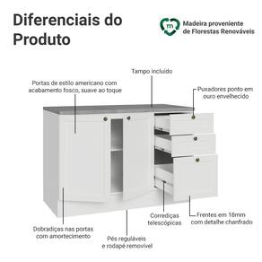 - Um (1) Balcão com duas (2) portas e três (3) gavetas (Acompanha o tampo)