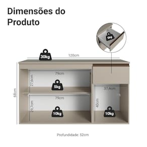 Produzido com materiais de qualidade, o balcão conta com dobradiças metálicas nas portas e puxadores em perfil de alumínio, discretos e resistentes. As gavetas possuem corrediças que permitem abertura total, oferecendo mais praticidade no uso diário. O tampo é removível, possibilitando a instalação de cuba ou pedra conforme o projeto e o acabamento de alta resistência mantém a beleza do móvel por muito mais tempo.