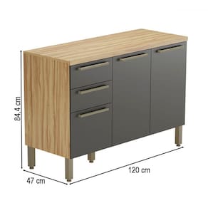 O(a) Balcão de Cozinha 120 Cm Napoli 3 Portas 2 Gavetas 100% Mdf Amêndoa/Cinza - Rio Doce é produzido em 100% MDF na escala de brilho Semi-Brilho, e possui um grau de dificuldade de montagem: Médio.
