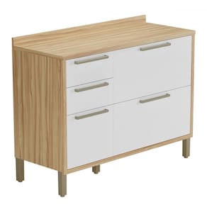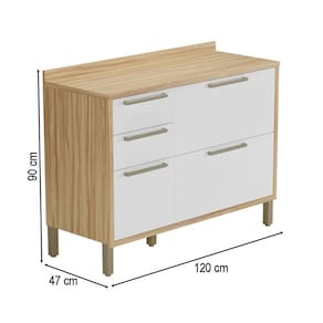 O(a) Balcão de Cozinha Syrah 1 Porta 4 Gavetas 100% Mdf Amêndoa/Branco - Rio Doce é produzido em 100% MDF na escala de brilho Semi-Brilho, e possui um grau de dificuldade de montagem: Médio.
