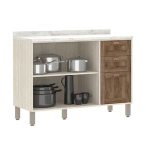 Balcão De Cozinha 120cm Com Tampo Sofia Luciane Móveis Pátina Ff Com Moscatto Ff O Balcao de Pia para Cozinha 120 cm Sofia foi desenvolvido aliando beleza e praticidade ao seu ambiente. As portas embutidas remetem ao planejado, ainda conta com acessorios requintados como dobradicas em 35mm com amortecimento Slowmotion, dobradica com amortecedor incorporado para fechamento suave de portas, puxadores plasticos na cor Bronze e pes em Ps (poliestireno) na cor champagne. Possui 3 gavetas com corredicas metalicas telescopicas em tres estagios, para abertura total. Perfeito para sua cozinha. Caracteristicas: Corpo/Caixaria: Patina FF (Finish Foil) Frontais: Frontais: MDF 18mm Moscatto FF (Finish Foil) Dobradicas: Metalicas 35 mm Slowmotion (com amortecedor) Puxadores: Plastico - Bronze Corredicas Metalicas Telescopicas em 3 estagios, garantindo abertura total das gavetas Portas: 2 Prateleiras: 1 Gavetas: 3 Pes: P S - Champagne
