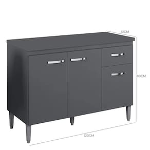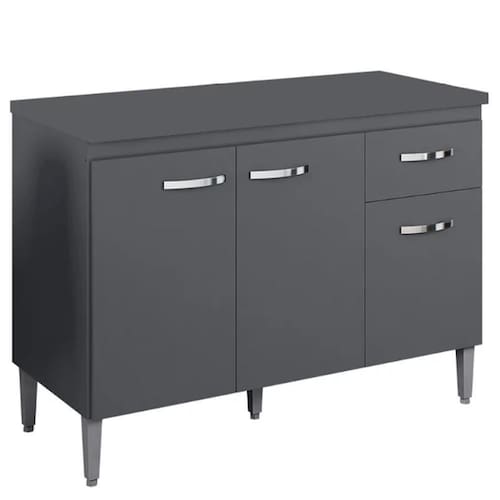 Balcão De Cozinha 120cm Gabriela 3 Portas 1 Gaveta Com Tampo Cinza