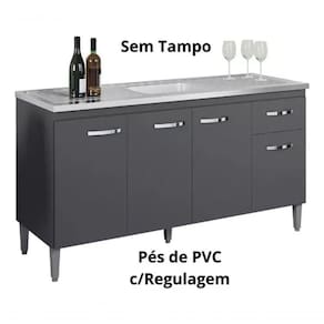 Balcão para Pia Cozinha 150cm Gabriela 4 Portas 1 Gaveta sem Tampo Cinza Fosco - AJL