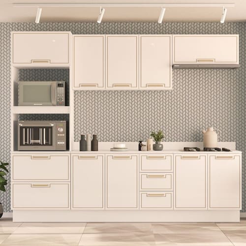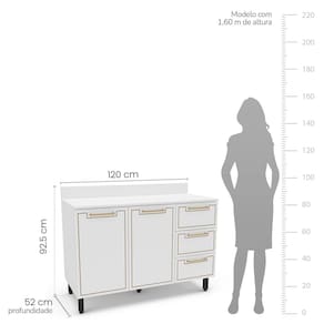 O Balcão de Cozinha Amara da Politorno Móveis, com 2 portas e 3 gavetas, é uma excelente opção para quem busca funcionalidade e estilo na cozinha. O grande diferencial deste modelo é o tampo, que não só adiciona um suporte extra para apoio, como também confere maior robustez ao móvel. Fabricado em MDP/MDF, ele é durável e resistente, com revestimento em FF/UV, que oferece proteção contra umidade e facilita a limpeza. As gavetas com corrediças telescópicas garantem um deslizamento suave e seguro. O acabamento usinado traz um toque moderno e elegante. Com 92,5 cm de altura, 120 cm de largura e 52 cm de profundidade, o balcão oferece não só amplo espaço interno para armazenamento, mas também um tampo ideal para preparar alimentos. Suporta Granito: Sim Acabamento da Prateleira: Pintura UV Escala de Brilho da Prateleira: Semi-Fosco Acabamento da Gaveta: Pintura UV Escala de Brilho da Gaveta: Semi-Fosco Material do Puxador da Gaveta: Alumínio Acabamento da Porta: Pintura UV Escala de Brilho da Porta: Semi-Fosco Material do Puxador da Porta: Alumínio Produto Montado: Sim Acabamento: Pintura UV Acompanha Tampo: Sim Altura dos Pés: 14 cm Altura Máxima dos Pés: 14.0000 Ambiente Principal: Cozinha Balcão Acompanha Pia: Não Balcão Suporta Pia: Sim Cesto para Frutas: Não codigo_ean: 7900288058454 Complexidade da Montagem: Média: pode ser montado por mais de uma pessoa e/ou necessite de maior conhecimento para montagem Cor: Branco Cor do Produto: Branco Cor Interna: Branco Escala de Brilho: Semi-Fosco Gaveta com Chave: Não Itens Inclusos: 1 Balcão Desmontado, 1 Tampo, 1 Kit de Ferragens, 1 Manual de Montagem e 1 Termo de Garantia Linha ou Coleção: Amara Manual de Especificação Técnica: https://product-hub-prd.madeiramadeira.com.br/977148/documents/3d7a6681-9aa6-41bf-a2db-7221f54f8c2f2673491622417388745000909.pdf Manual de Montagem e Instalação: https://product-hub-prd.madeiramadeira.com.br/977148/documents/2b6d4310-94e5-4392-8fb1-845c4ca9e86e2673490622417388744986136.pdf Marca: Politorno Material da Dobradiça/Corrediça da Porta: Metálica Material da Gaveta: MDF/MDP Material da Porta: MDF/MDP Material da Prateleira: MDF/MDP Material do Tampo: MDP Material dos Pés: Plástico Medida do Tampo (L x C x E): 92,5x120x52 modular: Sim Necessita Montagem: Sim O Balcão Acompanha Pia: Não Origem do Produto: Nacional Peso: 35,06 kg Peso Máximo por Gaveta: 5 kg Peso Máximo por Prateleira: 5 kg Possui Pés: 05 Possui Portas: Sim Possui recorte para Cooktop: Não Recomendações de Uso, Manutenção e Limpeza: Utilize um pano macio umedecido com água e sabão neutro, seguido de pano seco. Não utilize produtos químicos ou abrasivos para limpeza, pois estes danificam o revestimento do móvel. Sapatas Niveladoras: Sim Sistema de Montagem: Cavilha, Parafuso, Minifix e prego Suporta Até (kg): 20 kg Tipo de Base (pés): Pés Tipo de Corrediça da Gaveta: Telescópica Tipo de Dobradiça/Corrediça da Porta: Soft close Tipo de Porta: Bater Tipo de Puxador da Gaveta: Externo Tipo de Puxador da Porta: Externo undefined: 977148