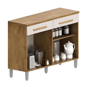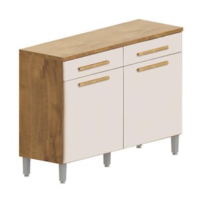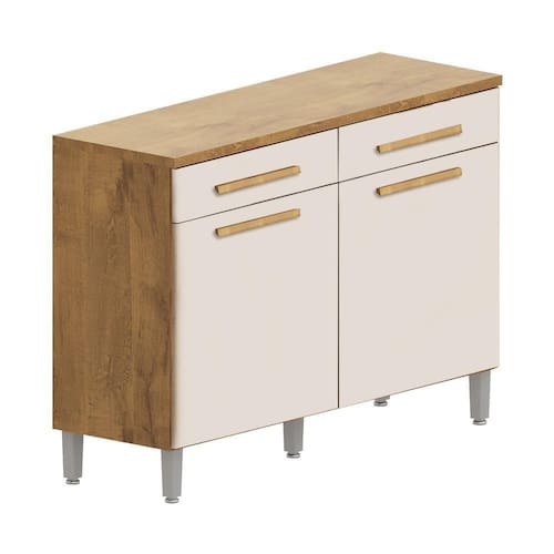 Balcão duplo 2 gavetas: O módulo balcão duplo 2 gavetas é fabricado inteiramente em MDP 15mm com tampo de MDP de 25mm. O que garante uma maior resistência e durabilidade do produto. Contém prateleiras internas e duas gavetas com corrediças telescópicas. A montagem com os pés é opcional e o módulo pode ser colocados diretamente na parede, o mesmo acompanha as ferragens necessárias para tal. O balcão duplo 2 gavetas conta com puxadores em MDF e possui uma pintura UV Touch ou alto brilho.