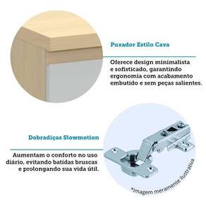 Portas: 1 Porta de bater com dobradicas metalicas 35mm Slowmotion para maior durabilidade e suavidade ao abrir e fechar.