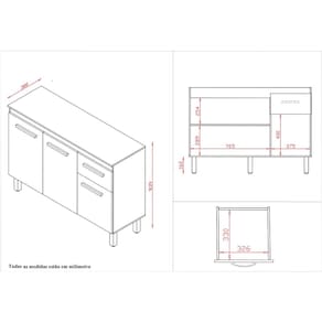Dimensões do Balcão para Cozinha 1,20 m 3 Portas: