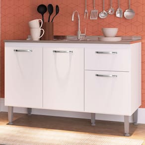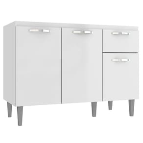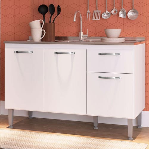 O(a) Balcão de Cozinha 3 Portas 1 Gaveta Branco - Irm Móveis é produzido em MDP na escala de brilho Semi-Fosco, e possui um grau de dificuldade de montagem: Médio.
