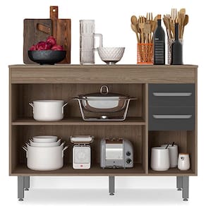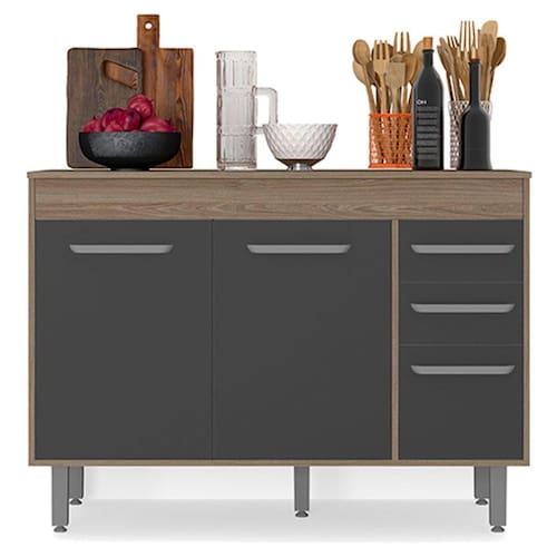 Balcão de Cozinha 3 Portas 2 Gavetas 120cm Flex com Tampo Carvalho Grafite – Poliman